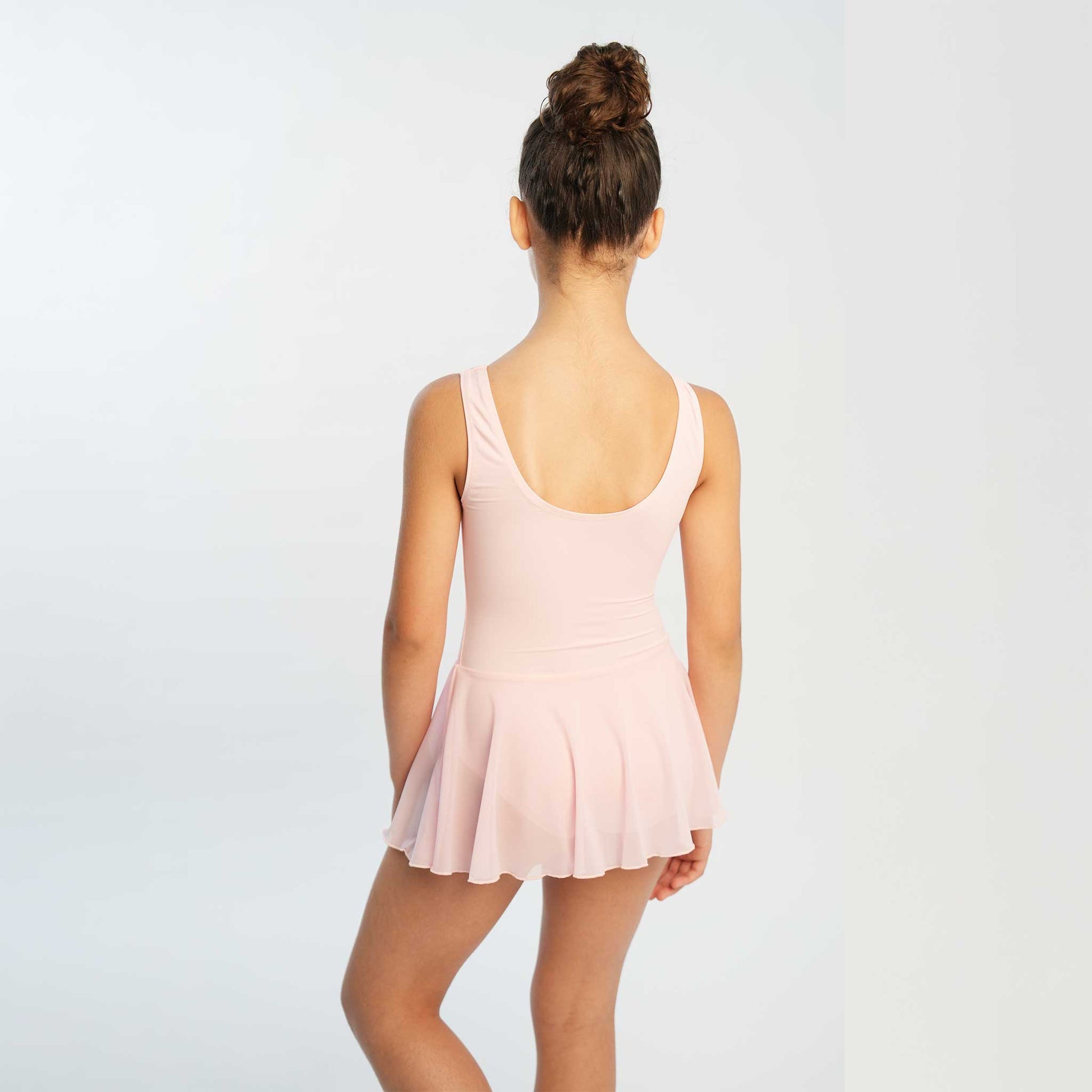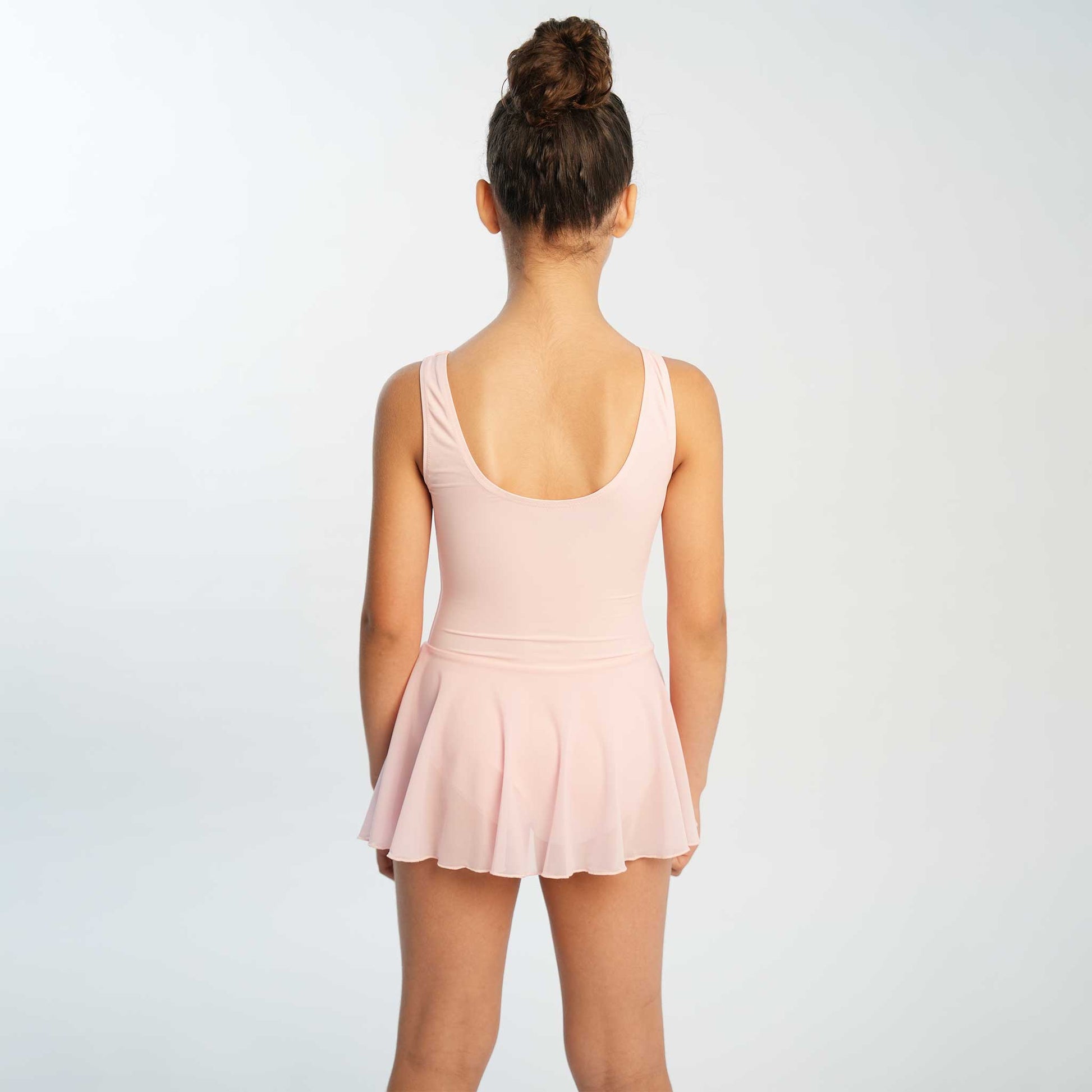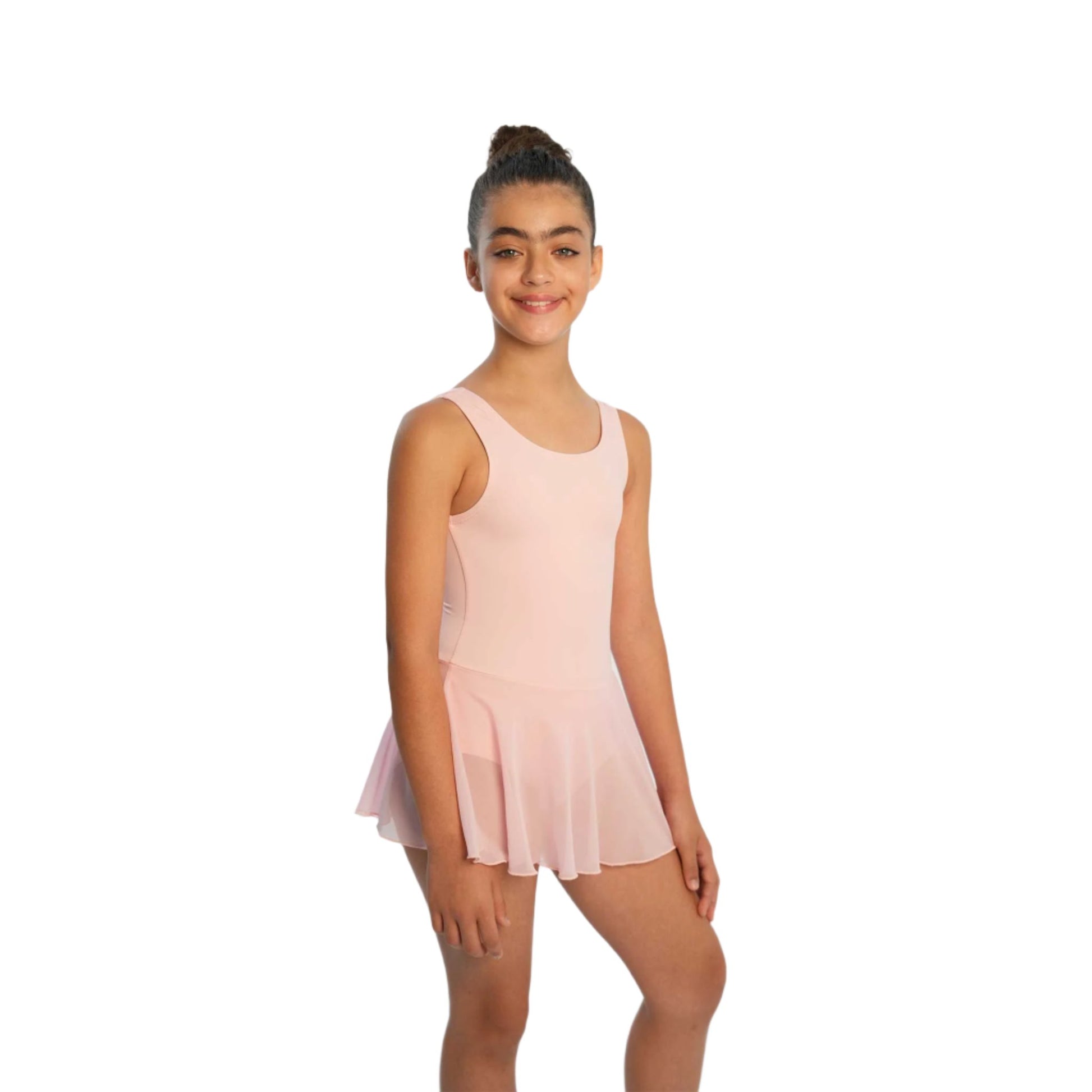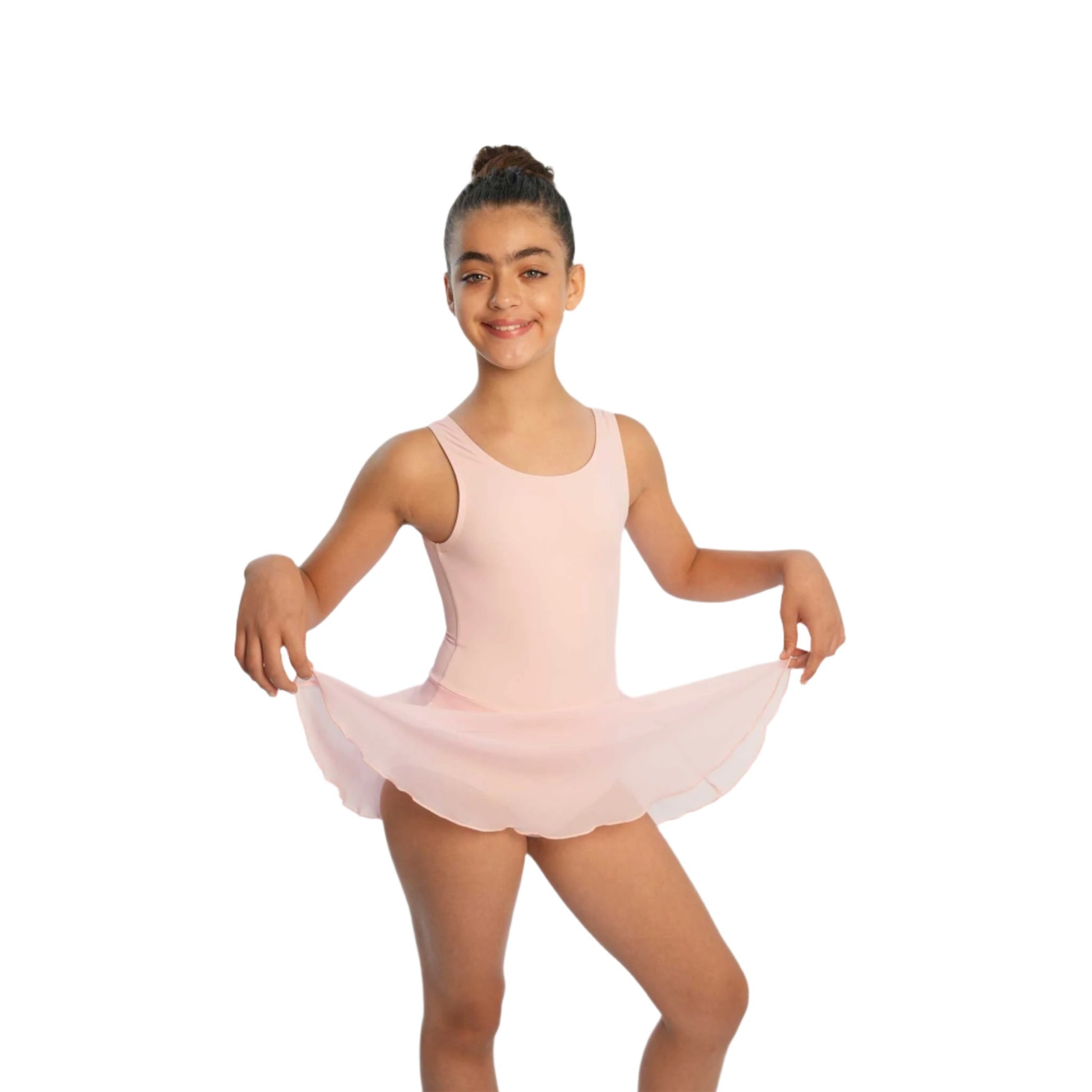 This Tank Sleeve Ballet Dress is a charming and functional piece for young dancers. Featuring a built-in leotard with a soft, flowy skirt, this dress is designed for both comfort and style. The tank sleeves provide support and full shoulder coverage, while the scoop neckline and low back add an elegant touch. Made from stretchy fabric, it allows for full range of motion, making it perfect for ballet classes, rehearsals, or performances.